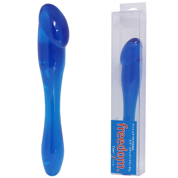 クリアブルーの「β(ベータ)」は、両端で形状が異なり、少し太目の流線型ストレート側と、ペニスを挿入する感覚を味わえる側の2種類。