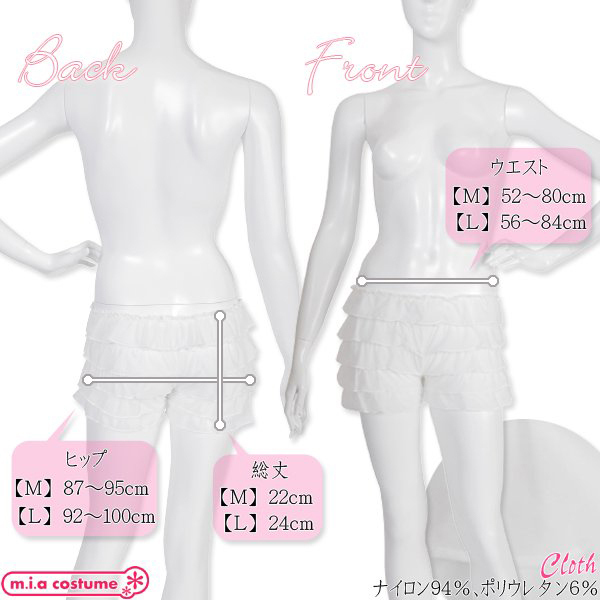 セット内容:ペチコートパンツ単品(ウエストゴム) 素材:ナイロン94%、ポリウレタン6% モデル身長162cm